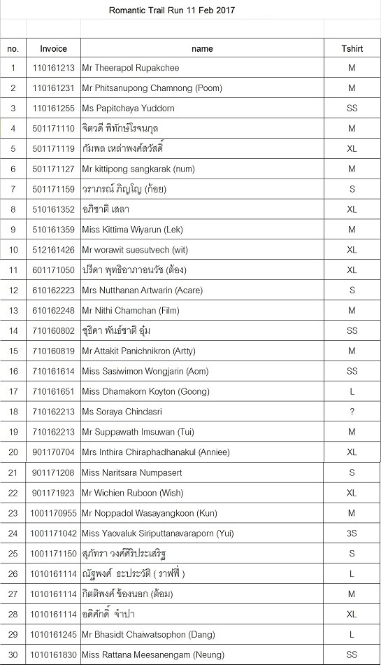 วัน เวลา : เสาร์ที่ 11 ก.พ. 60 ปล่อยตัว 06.30 น. (รอยืนยัน/รอสว่าง)