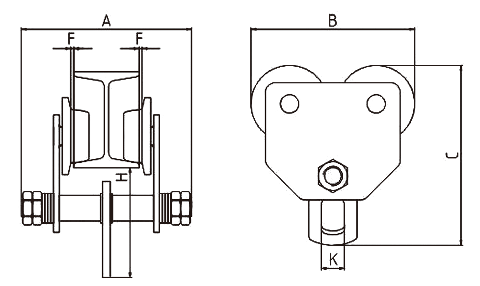 GCT系列手推单轨行车特点: 1、锻造的经过热处理的跑车轮,牢固耐用,运行平稳,可选配铸造跑车轮。 2、跑车轮有封闭式的轴承,运行更省力。 3、起重量1/2Ton-10Ton。 4、过弯能力良好